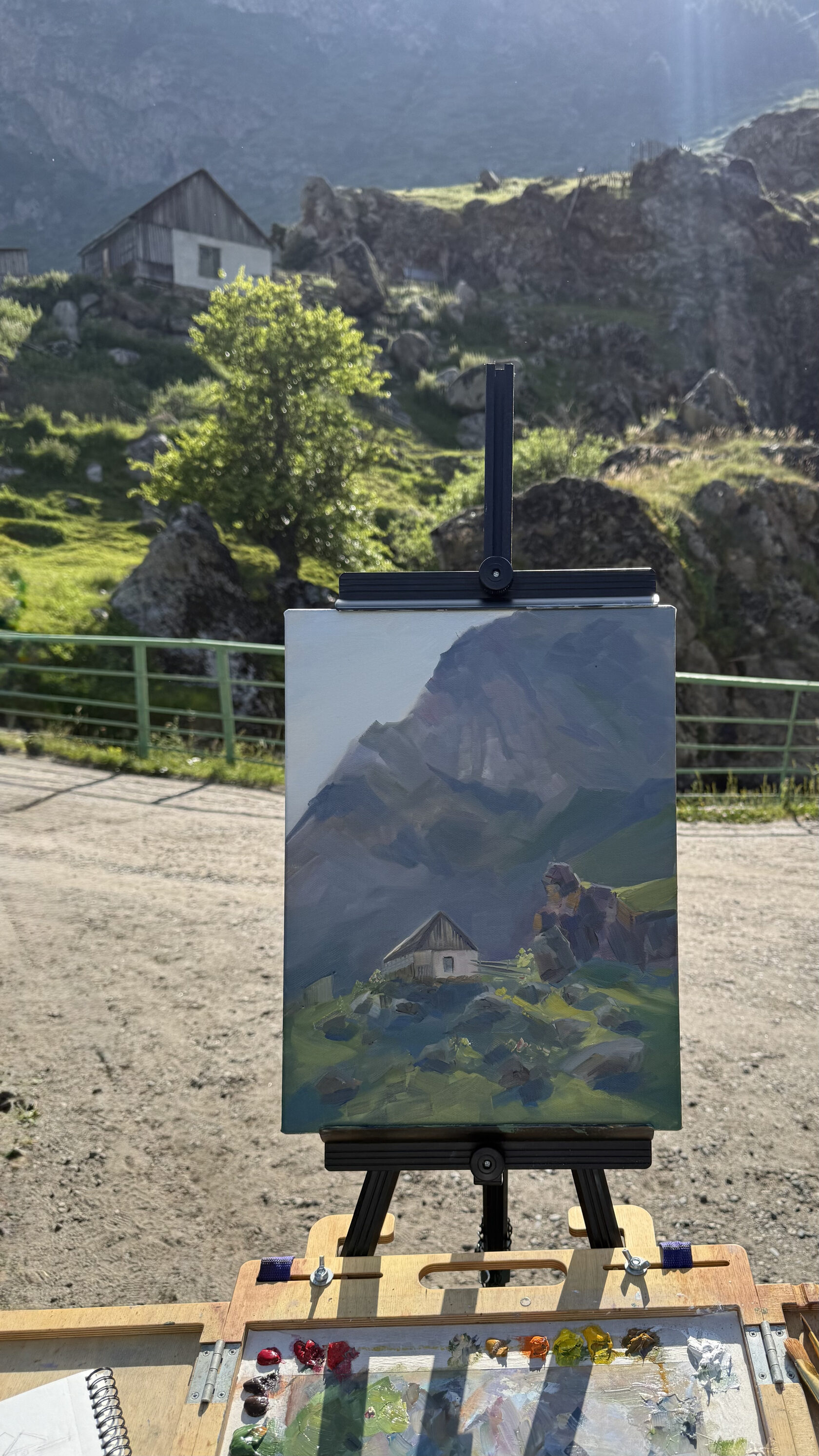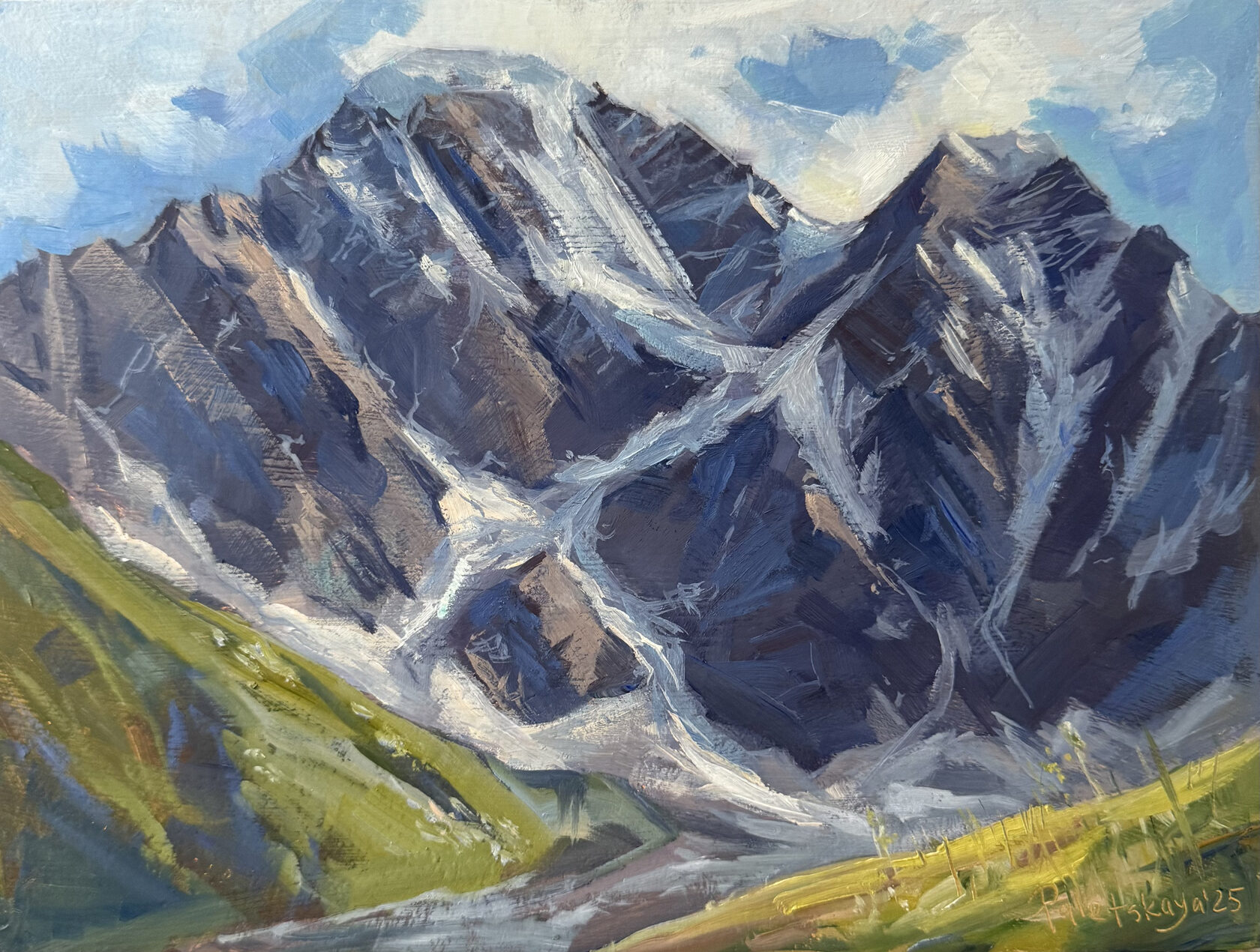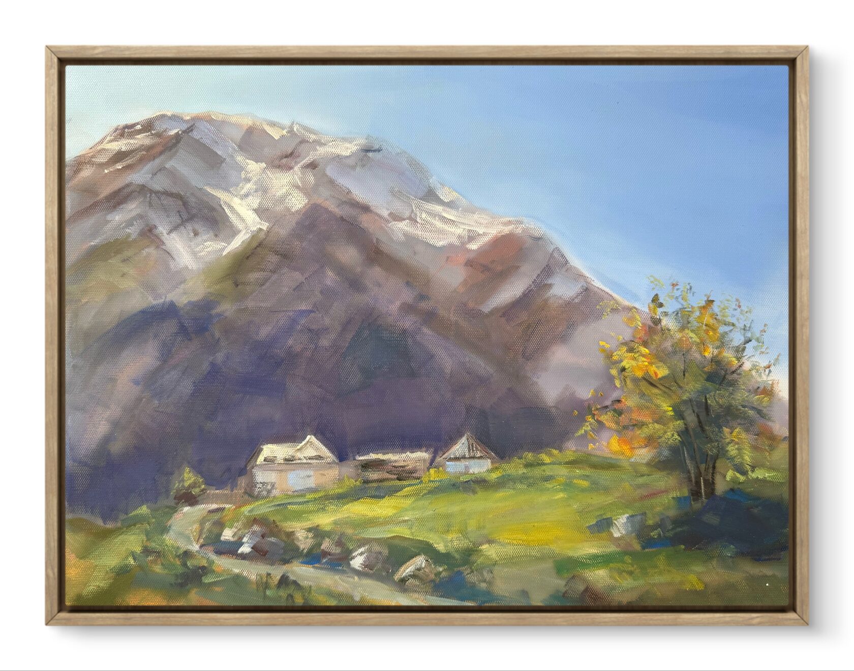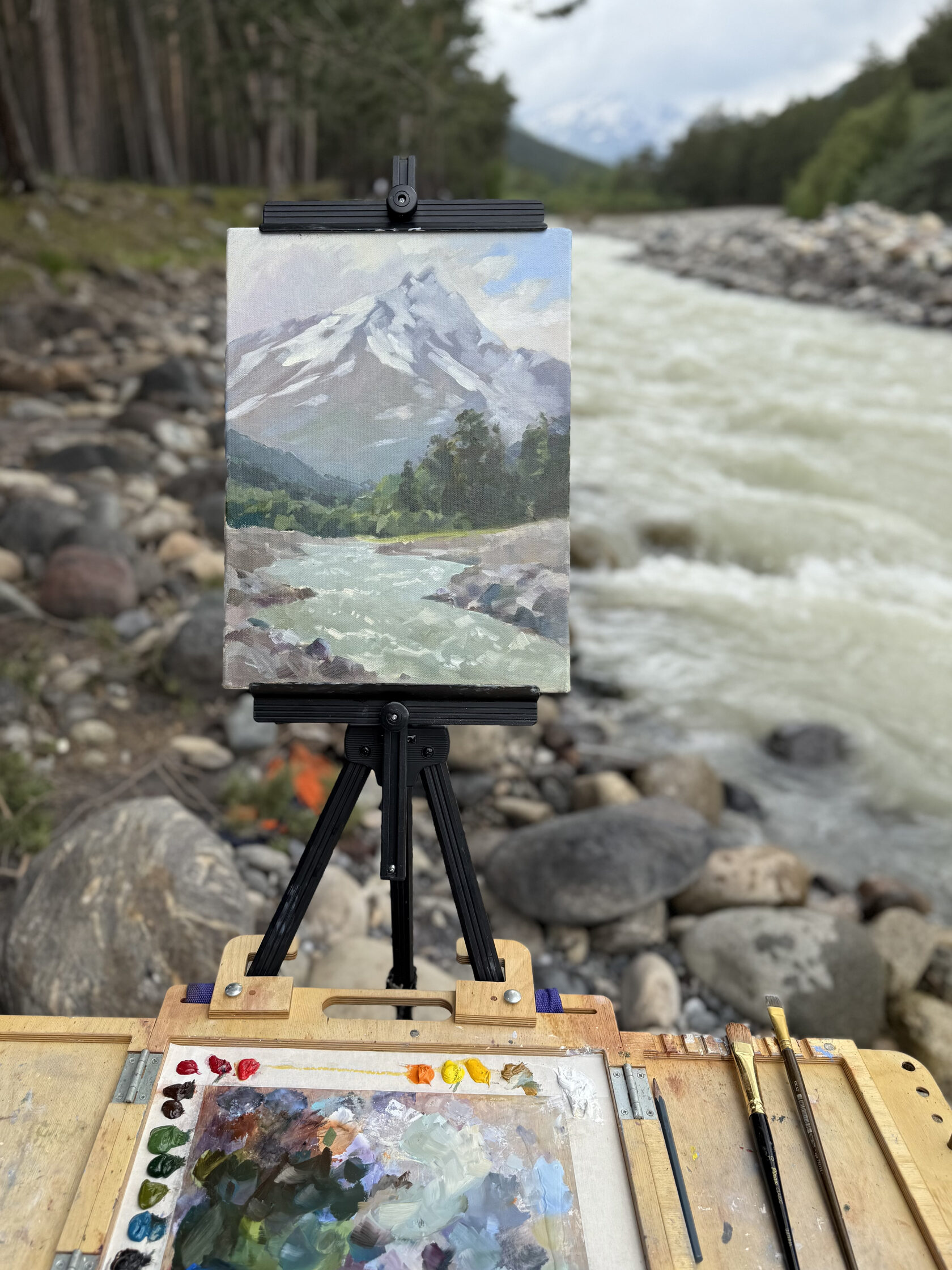 Предзакатное время в Верхнем Баксане, Приэльбрусье. Мягкие, пастельные оттенки. Масляный этюд написанный вживую. Холст на подрамнике, подвесы входят в комплект. Возможно оформление в раму.