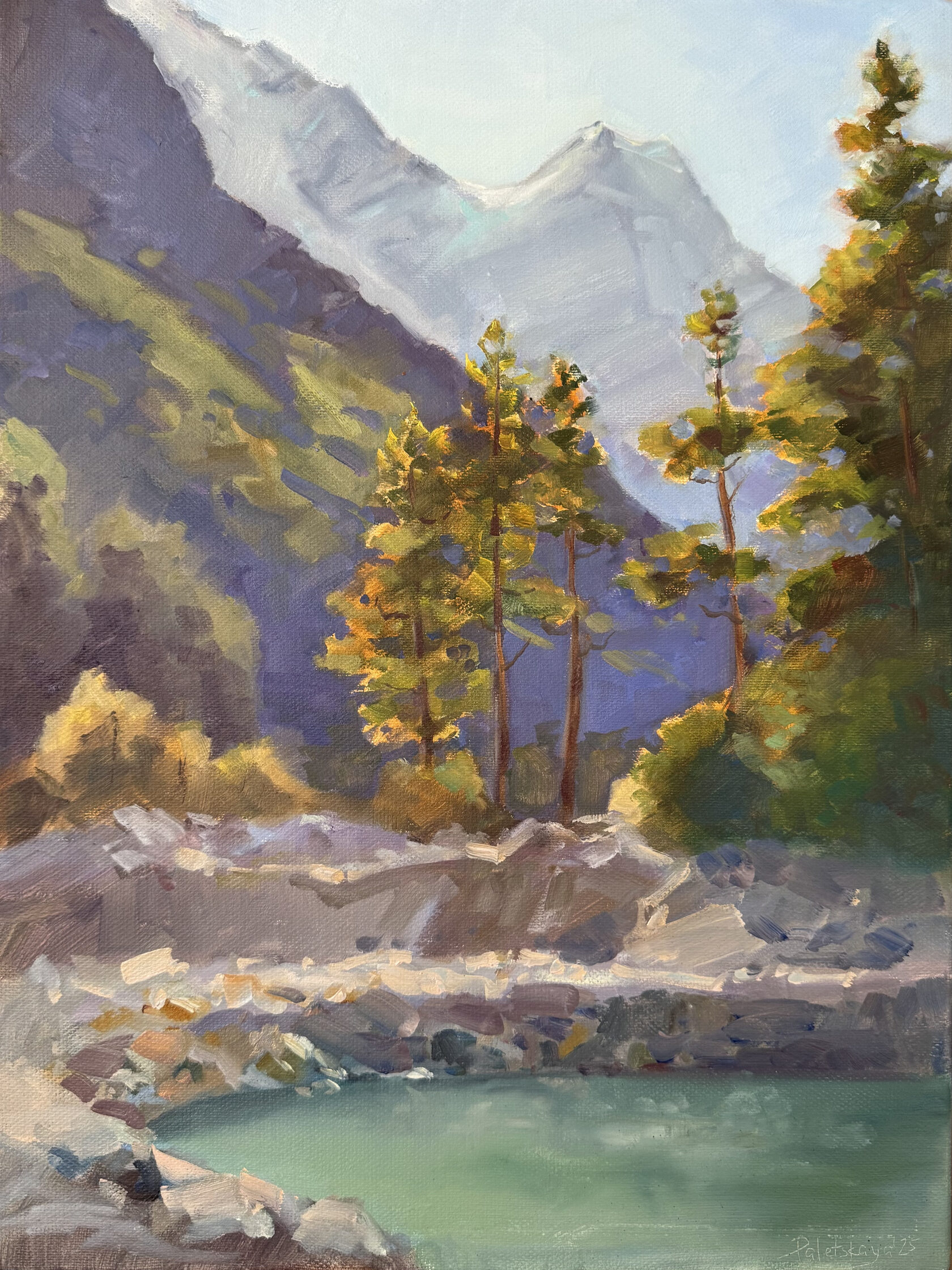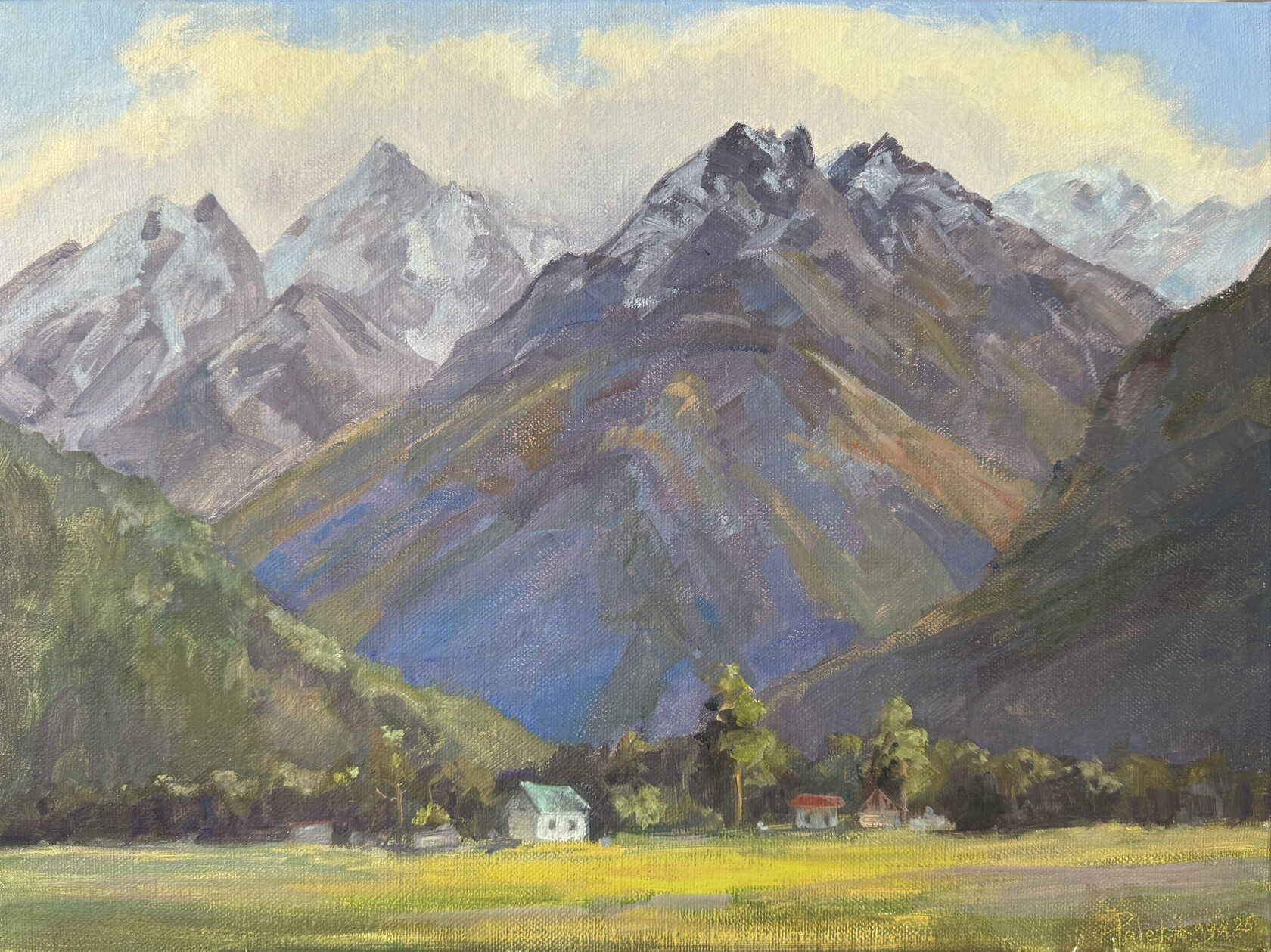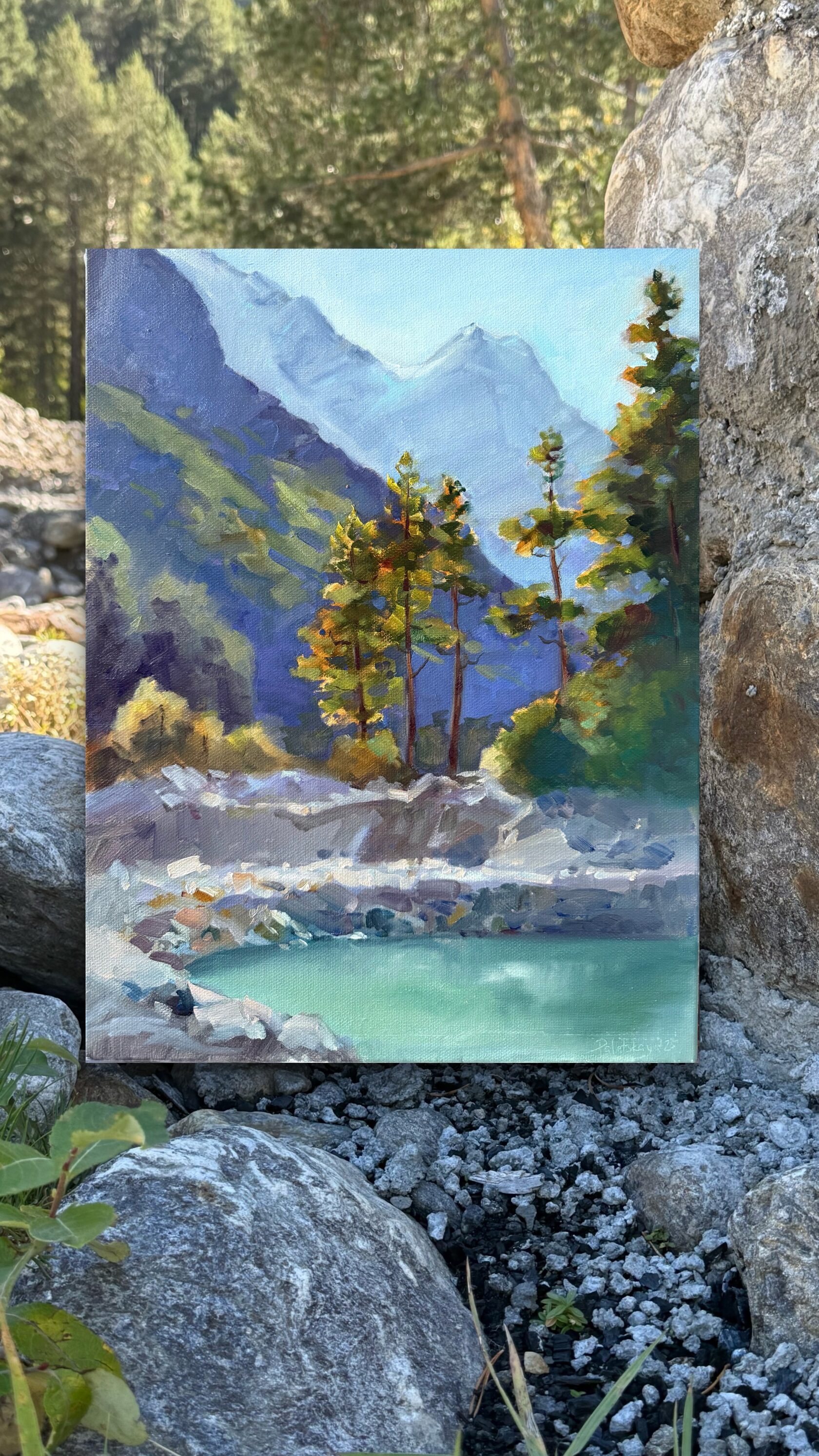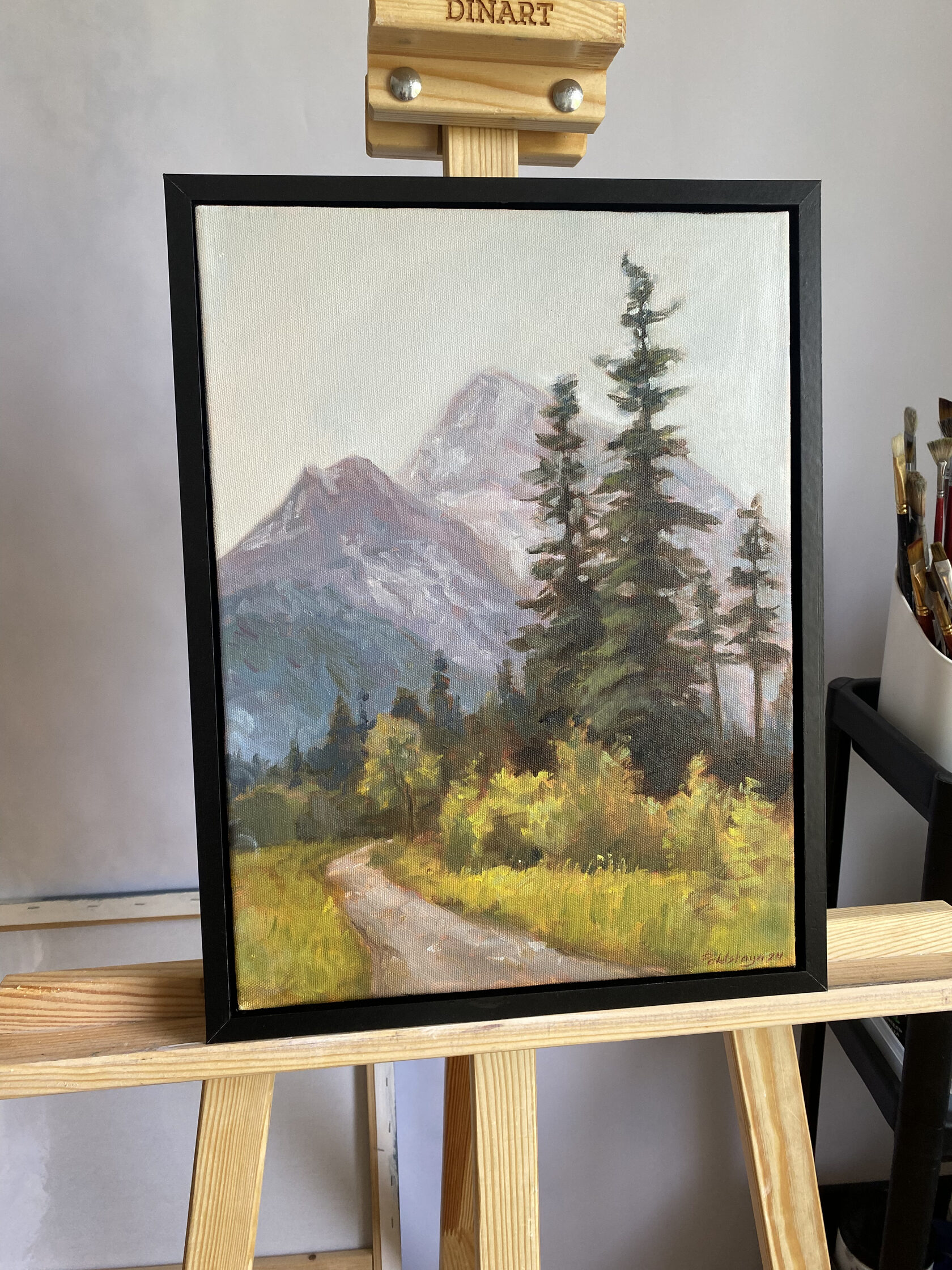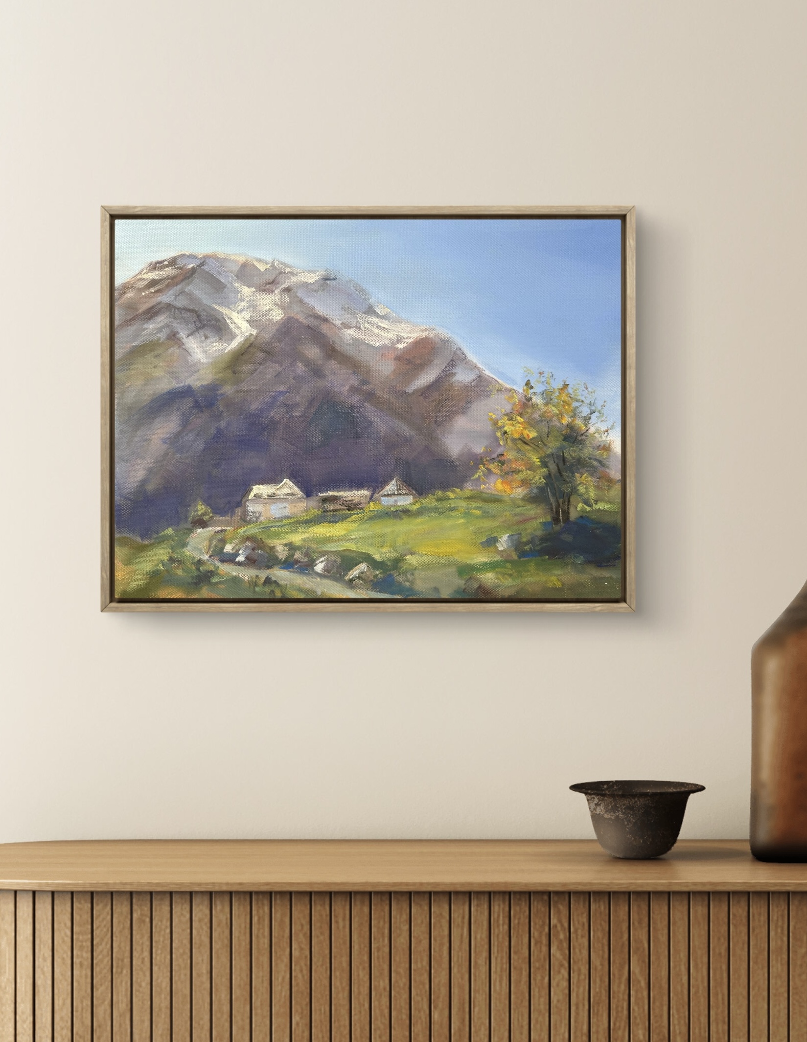 Предзакатное время в Верхнем Баксане, Приэльбрусье. Мягкие, пастельные оттенки. Масляный этюд написанный вживую. Холст на подрамнике, подвесы входят в комплект. Возможно оформление в раму.