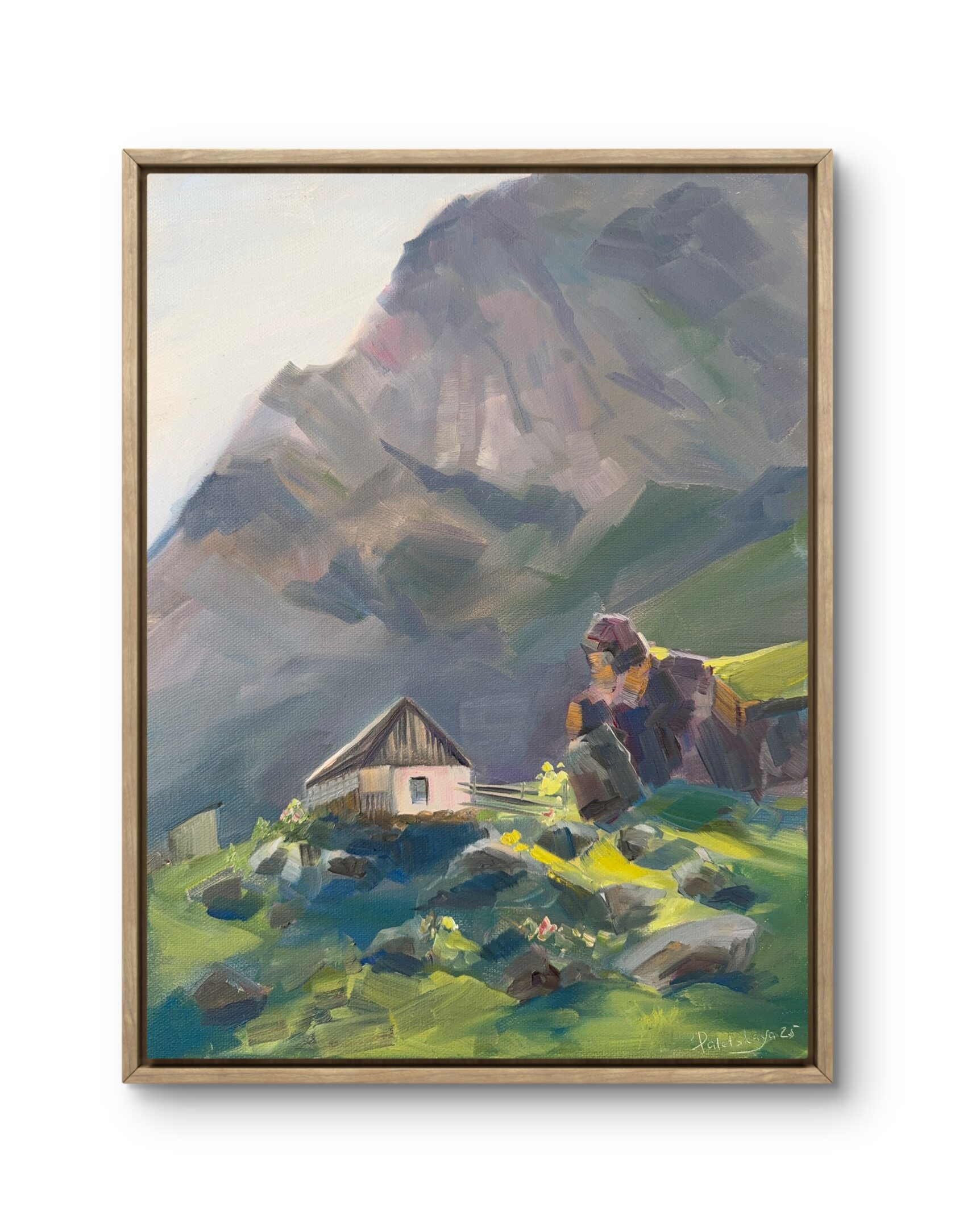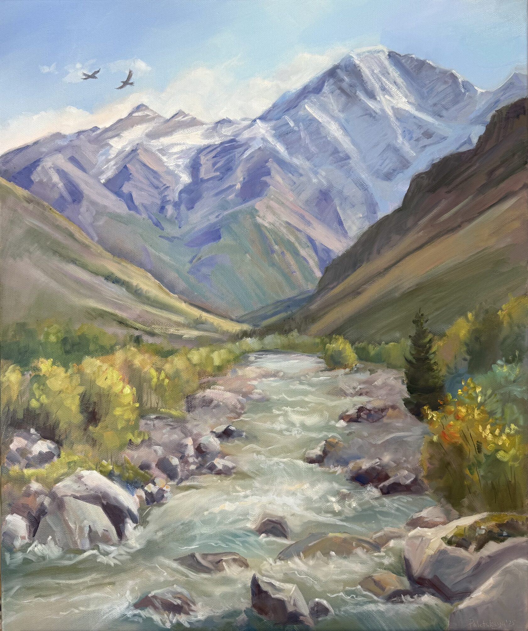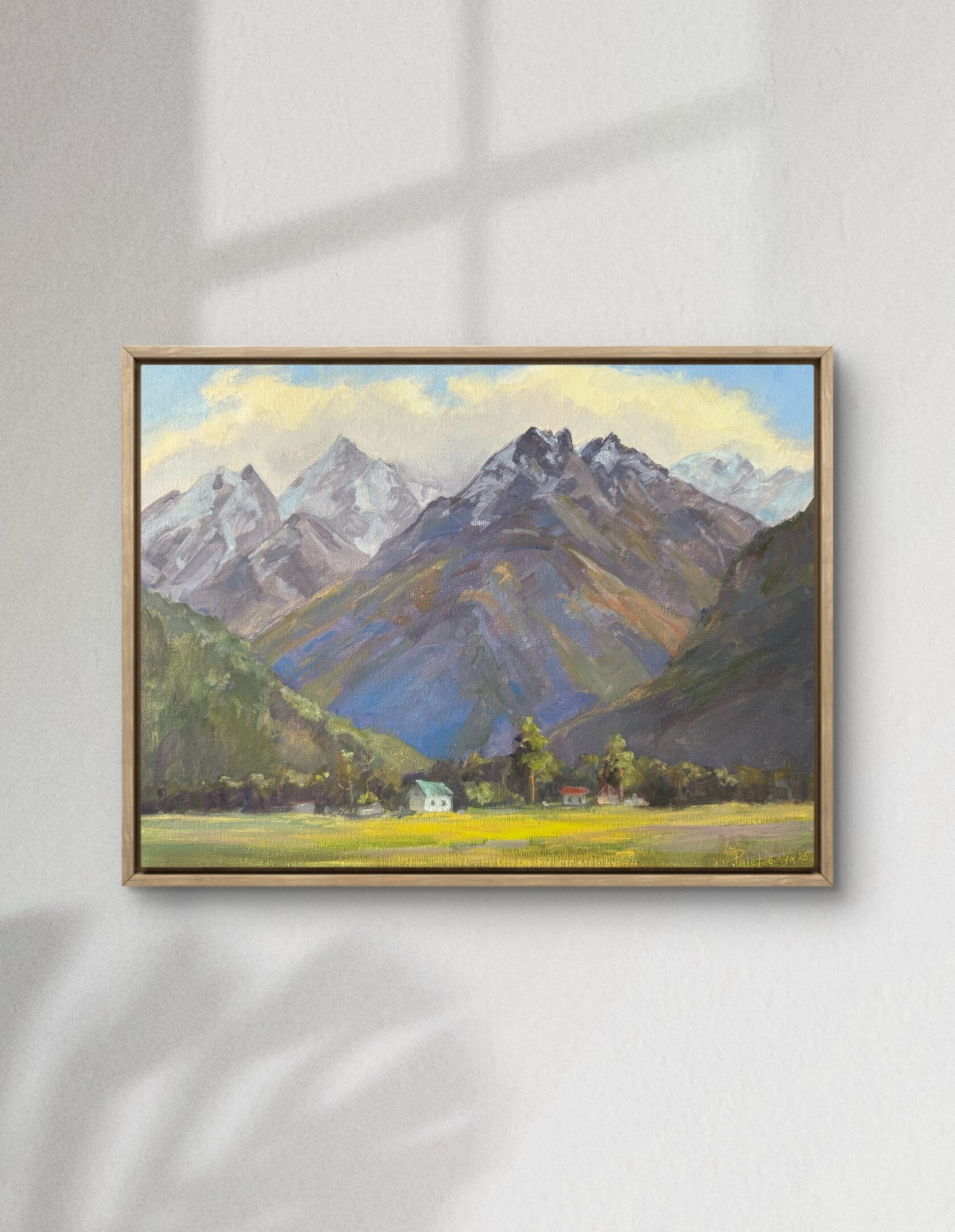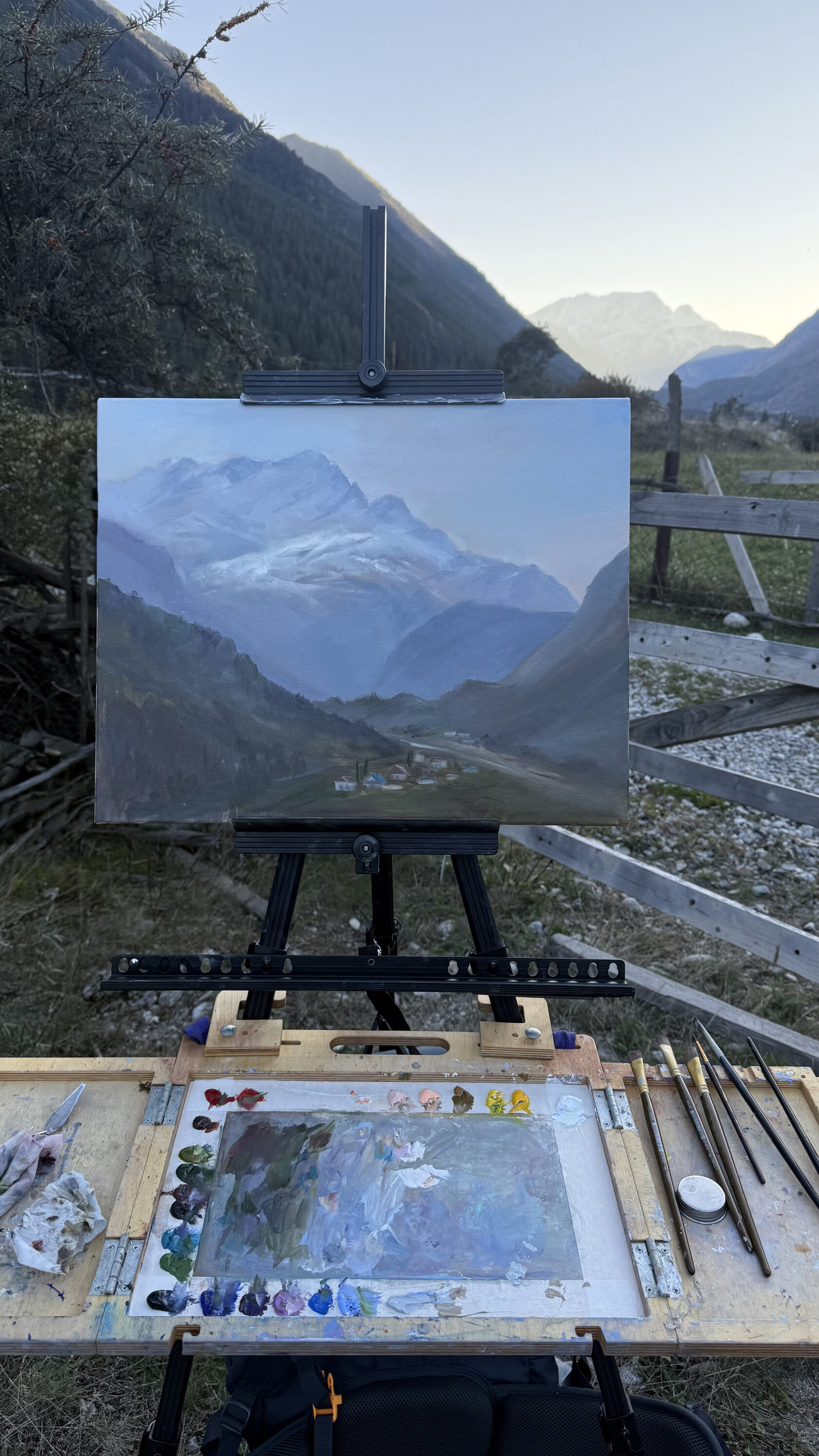 Предзакатное время в Верхнем Баксане, Приэльбрусье. Мягкие, пастельные оттенки. Масляный этюд написанный вживую. Холст на подрамнике, подвесы входят в комплект. Возможно оформление в раму.