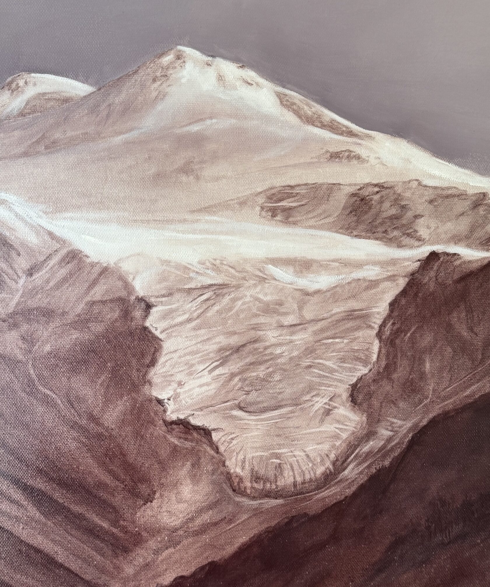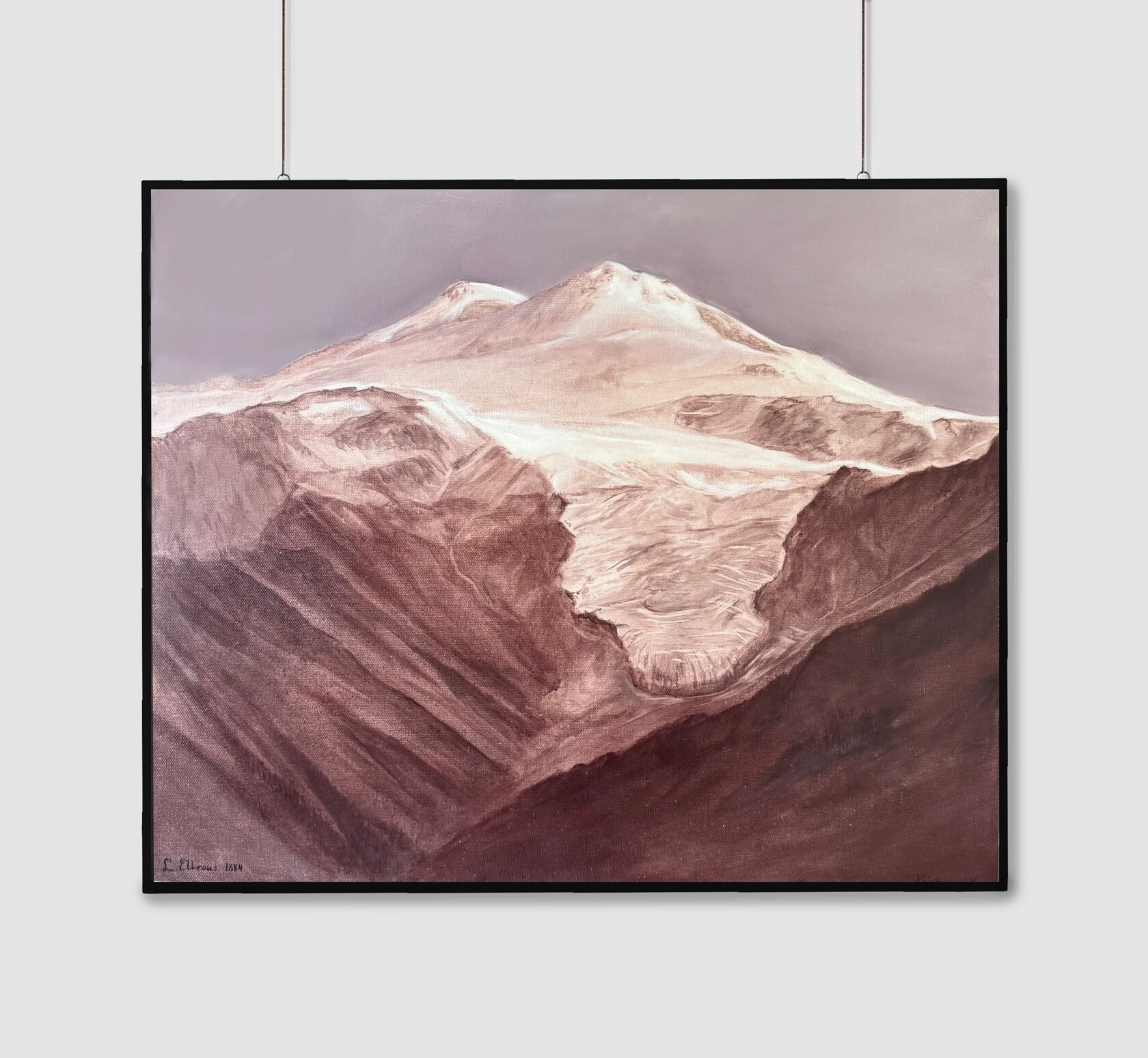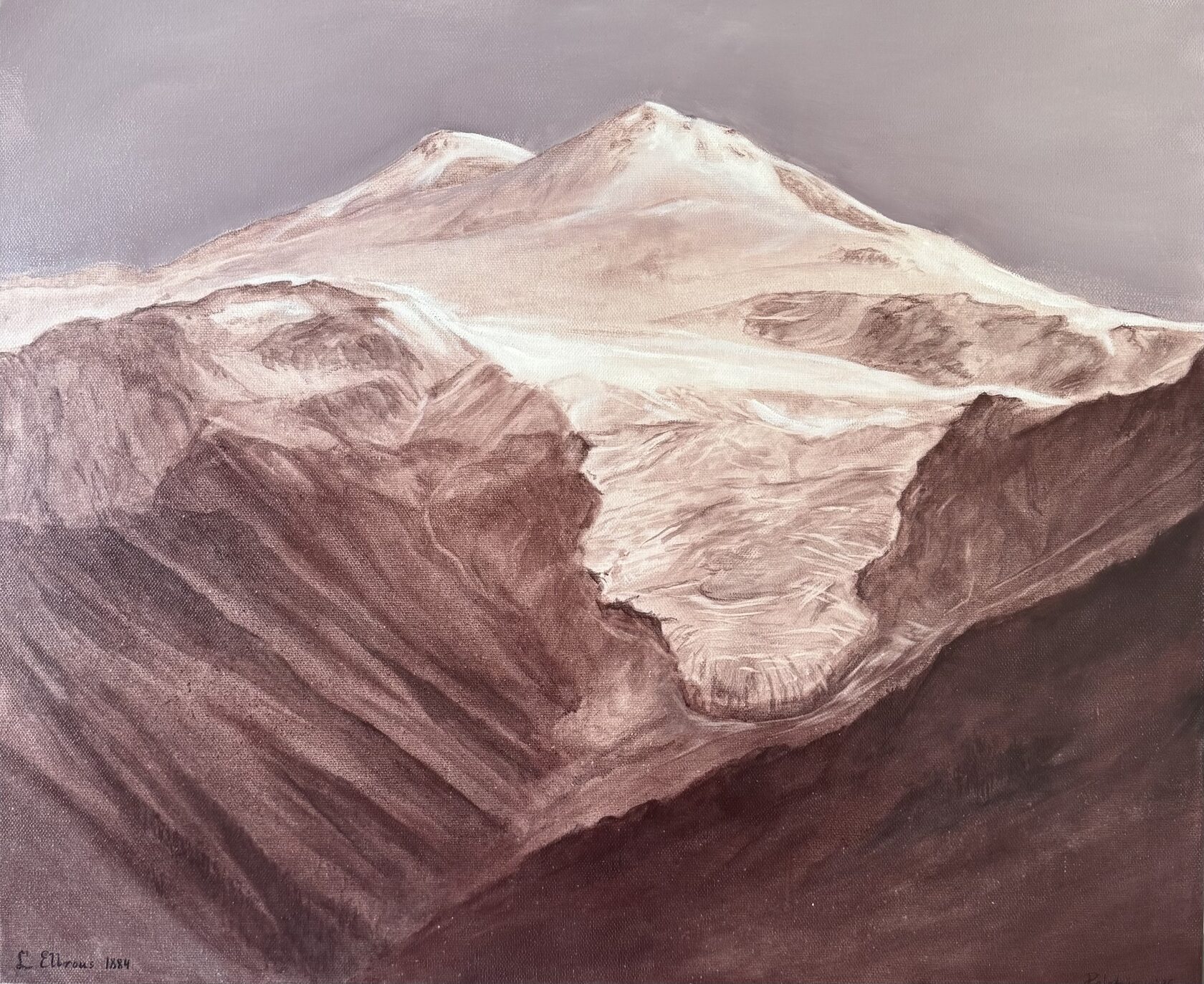 Изображение Эльбруса и ледника Терскол в 1884 г. Картина маслом на холсте написана по фото фотографа Морица Деши из его экспедиции по Кавказу 1884-1886