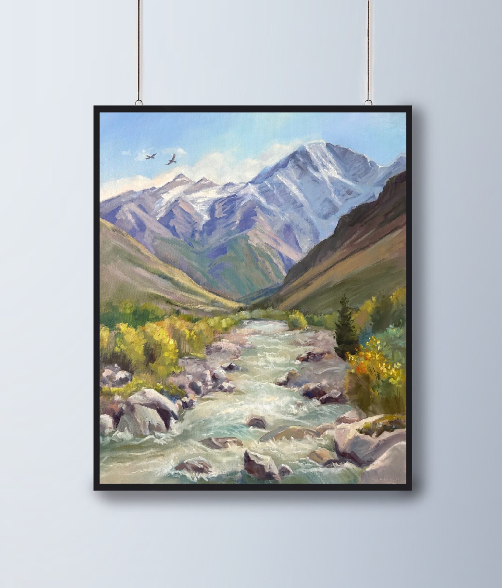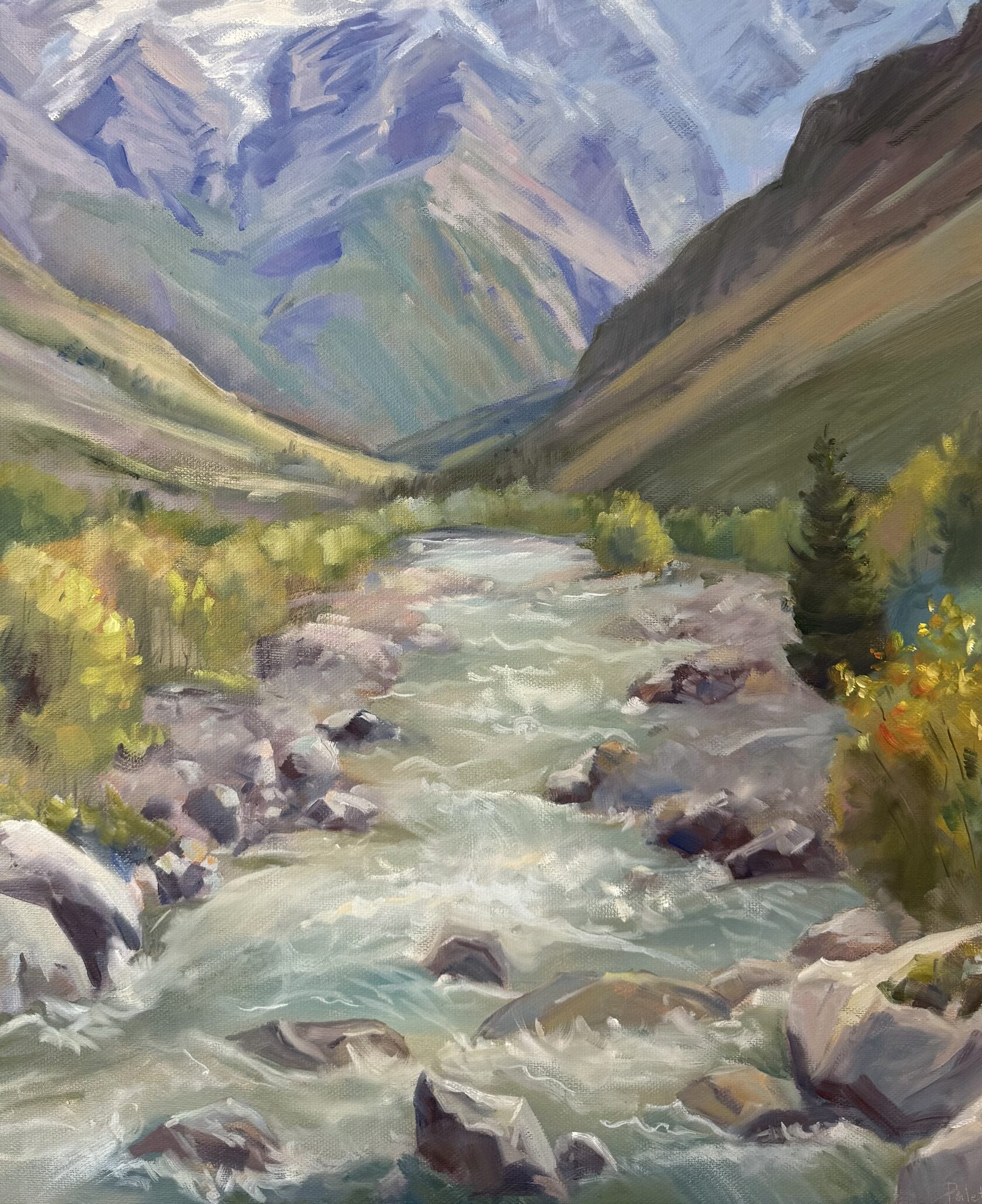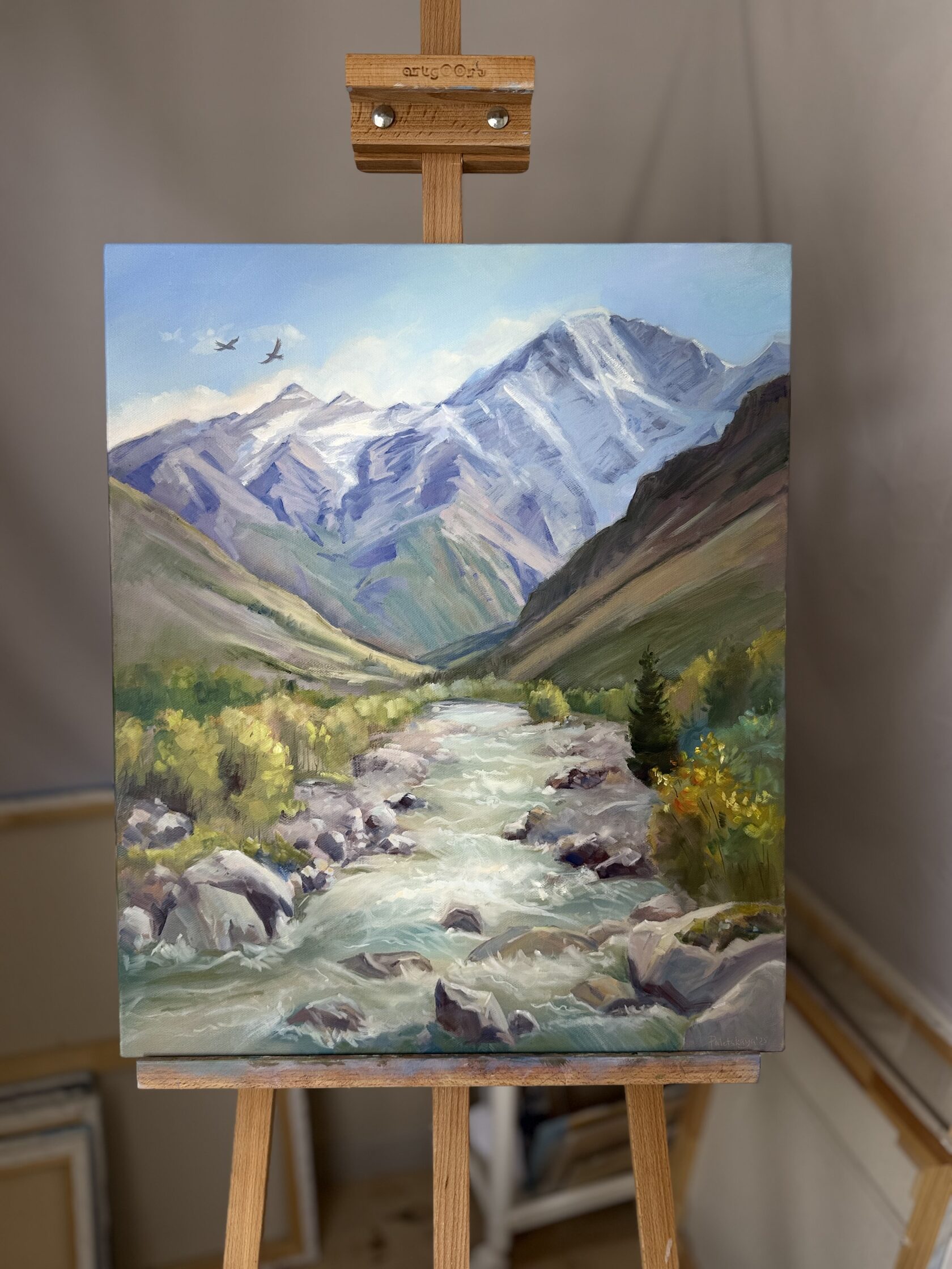 Яркие и сочные цвета осени. Вид с правого берега реки Донгузорун (под г. Чегет) Масляный этюд написанный вживую. Холст на подрамнике, подвесы входят в комплект. Возможно оформление в раму