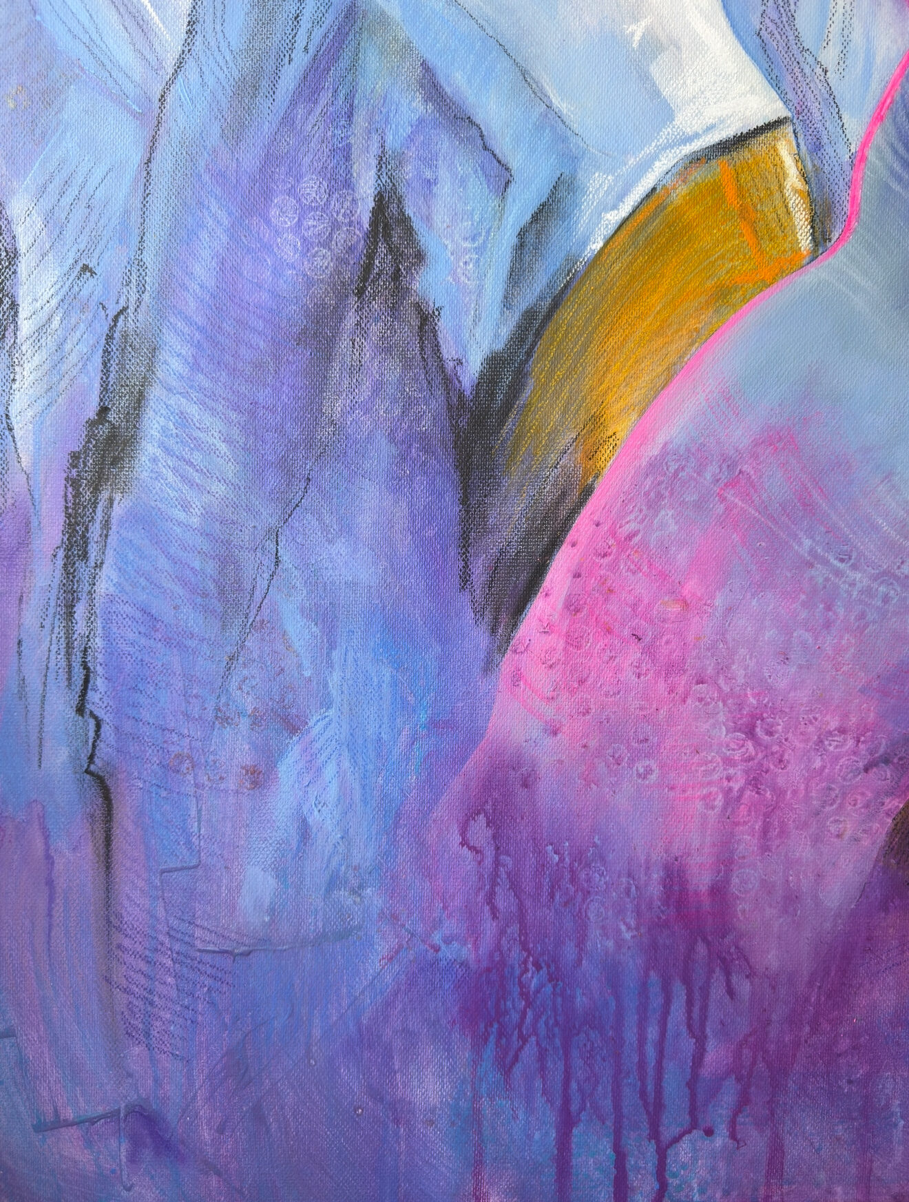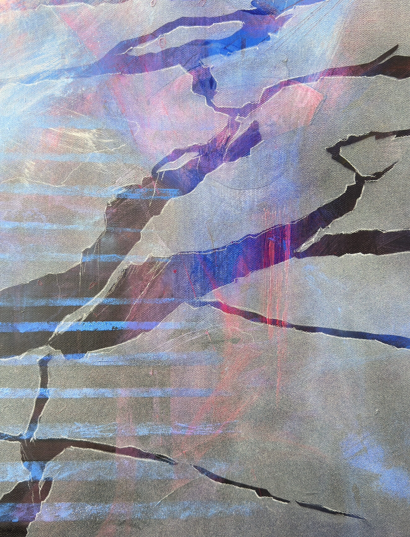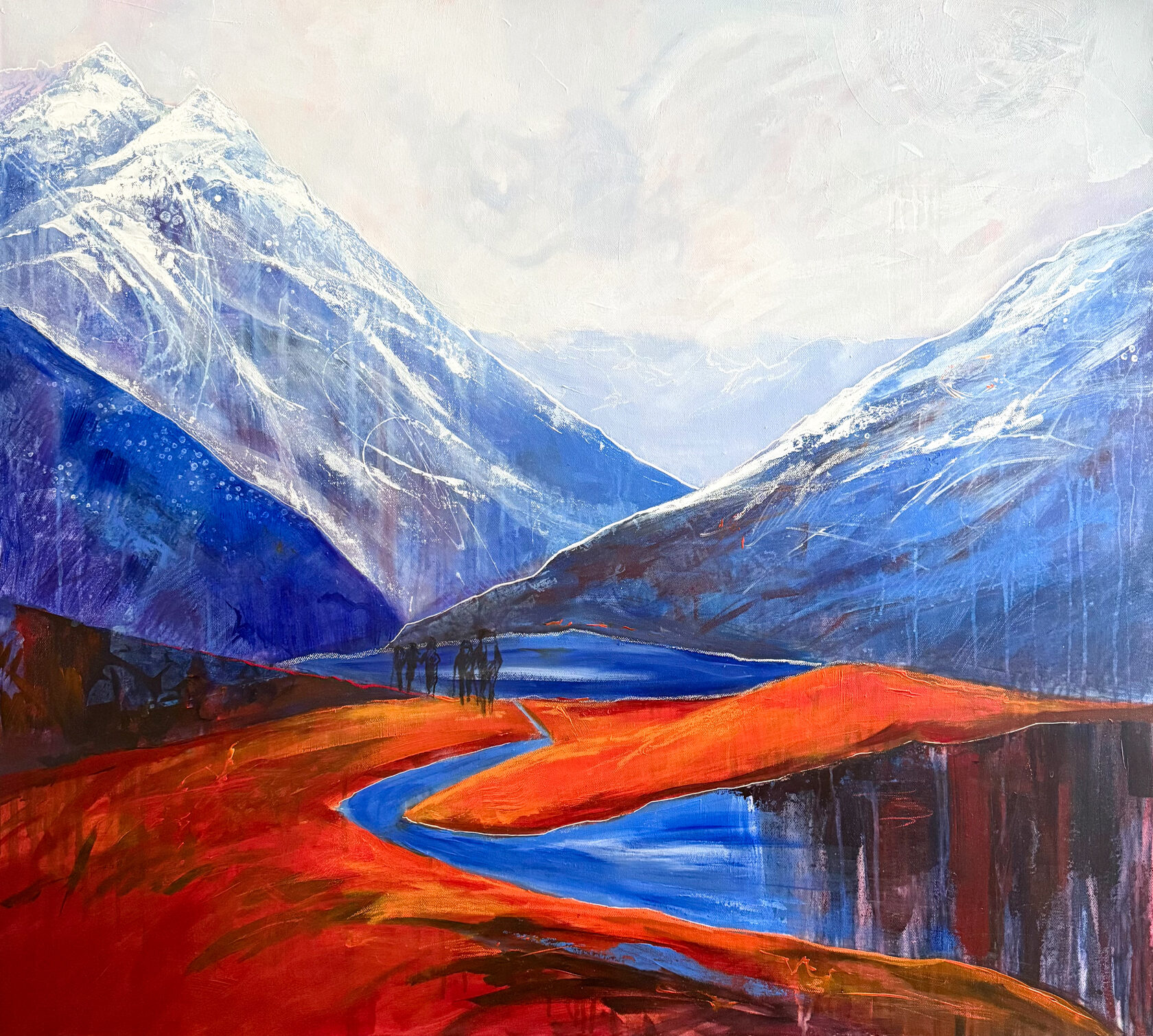 Картина на холсте без подрамника, транспортируется свернутой в тубу (необходимая мера для транспортировки заграницу). Также возможна натяжка на подрамник и отправка в готовом виде. Абстрактная картина. Метафортическое сравнение офисной жизни и свободы на склоне.